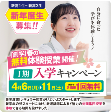 入学はまだ間に合う。Ⅰ期無料体験CP実施します。
