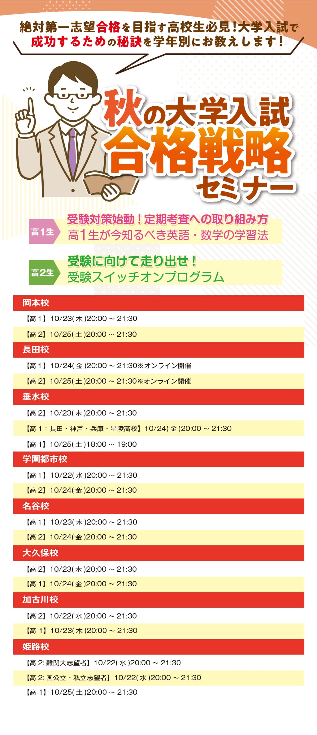 高1・高2対象 秋の大学入試合格戦略セミナーお問い合せ