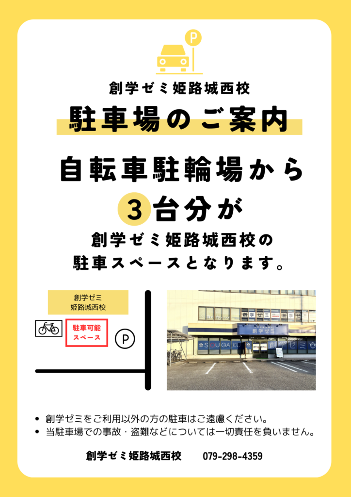 姫路城西校は駐車場が完備しており、お車での送迎が可能となっております。