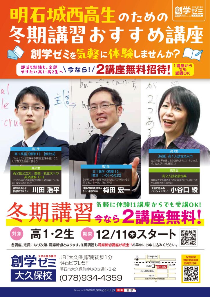• 【明石城西 高1・2生】冬期講習のおすすめ!