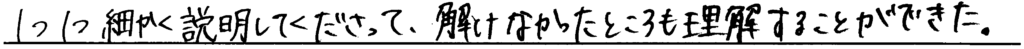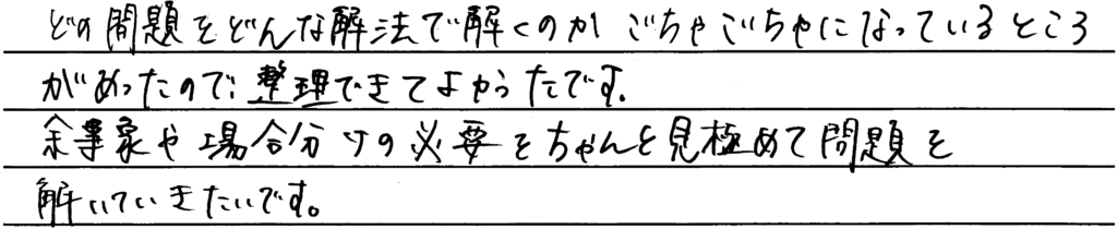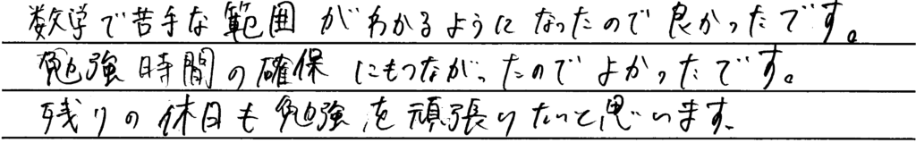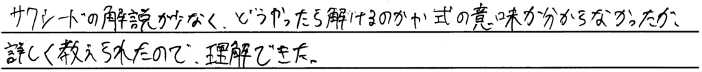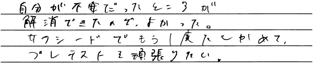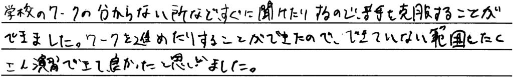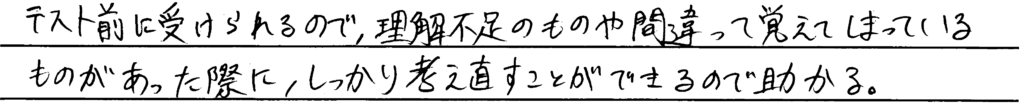 創学大久保校の講師が過去問を分析して作成したプレテストと、本番さながらの雰囲気で、今回の考査を体感できました。